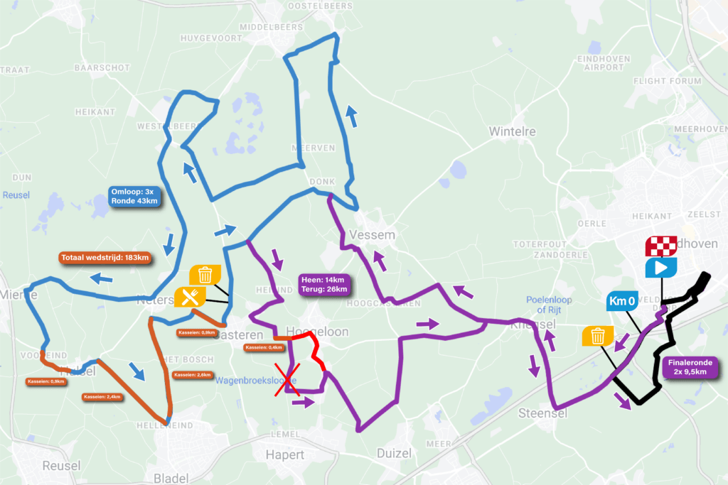 Vanwege de NAVO-top in 2025 worden de VDL Groep Omloop der Kempen en Simac Omloop der Kempen Ladies op een alternatief ‘plan-b’ parcours verreden. In tegenstelling tot andere jaren worden niet alle Kempen dorpen aangedaan, maar wordt er gereden op een omloop van 30-40 kilometer. Hiermee vermijden we zoveel mogelijk dorpskernen en kunnen we zonder Politie begeleiding toch de Omloop der Kempen rijden. Vanuit de plaatselijke omloop komt de wedstrijd zoals andere jaren gewoon terug in Veldhoven voor de finalerondes.